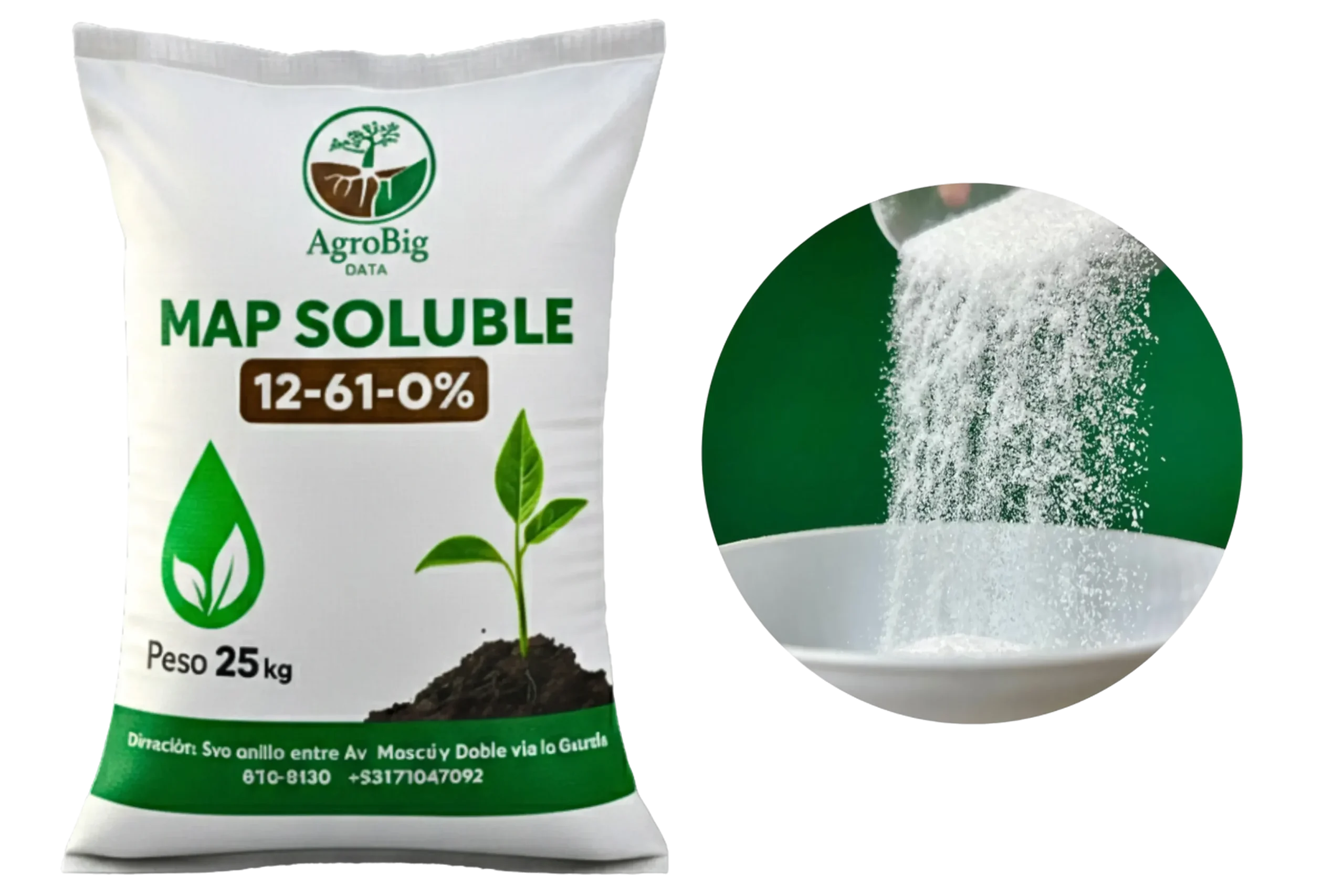 También suministrar fósforo (P) y nitrógeno (N), pero en una forma soluble, ideal para fertiirrigación o aplicaciones foliares