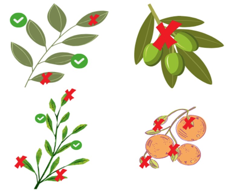No recolectar hojas terminales, viejas, ni con síntomas de patologías