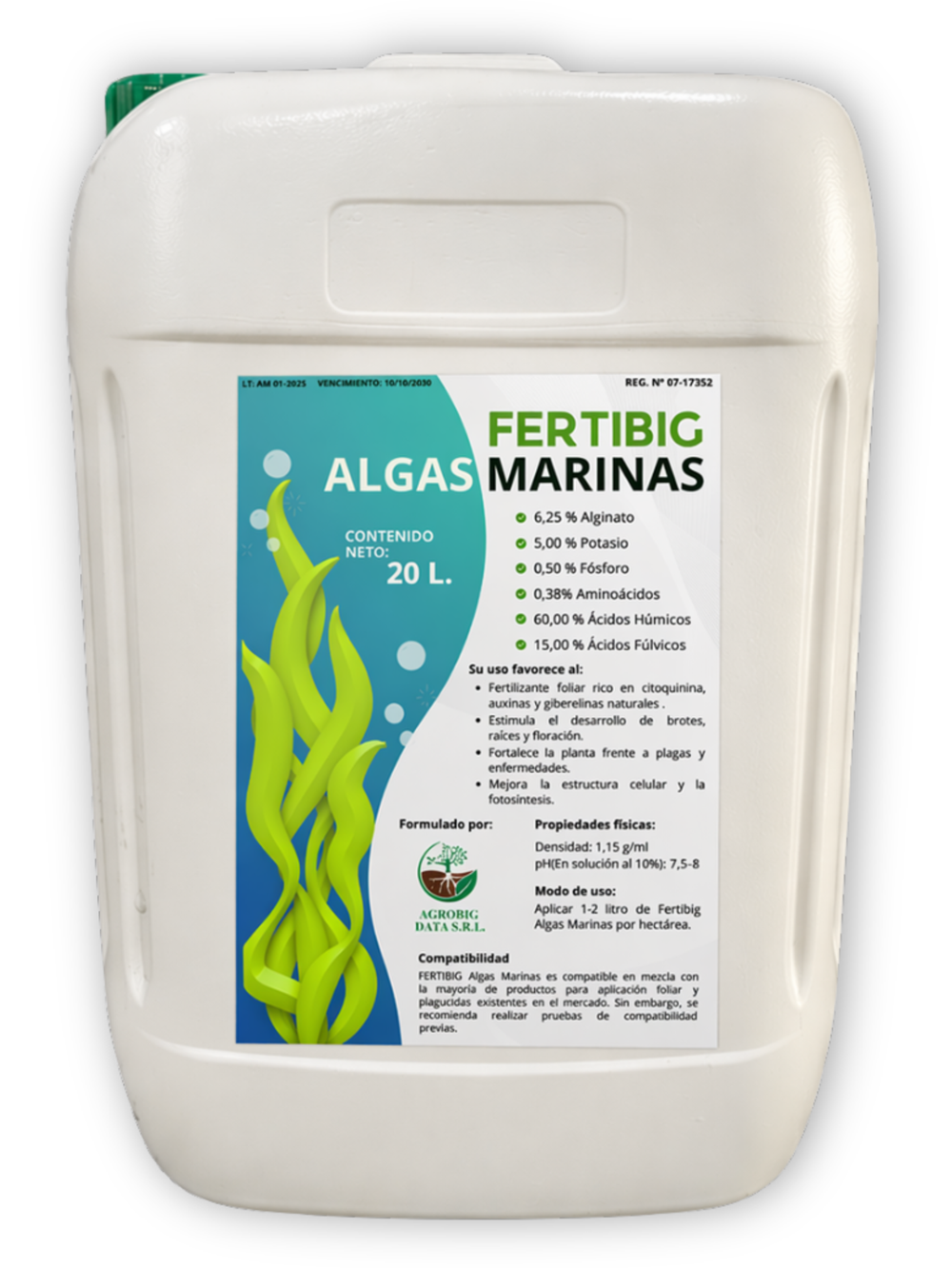 - Aplicar 1-2 litros de Fertibig Algas Marinas por hectárea.